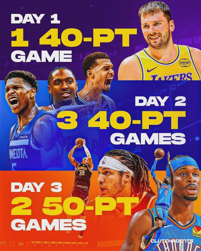 东契奇两场轰下92分,才勉强坐上了得分榜榜首的位置(至少出战两场比赛)。